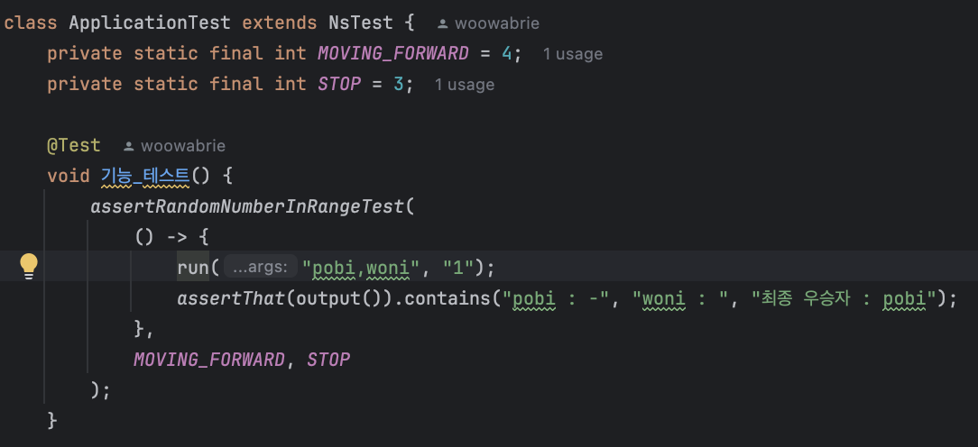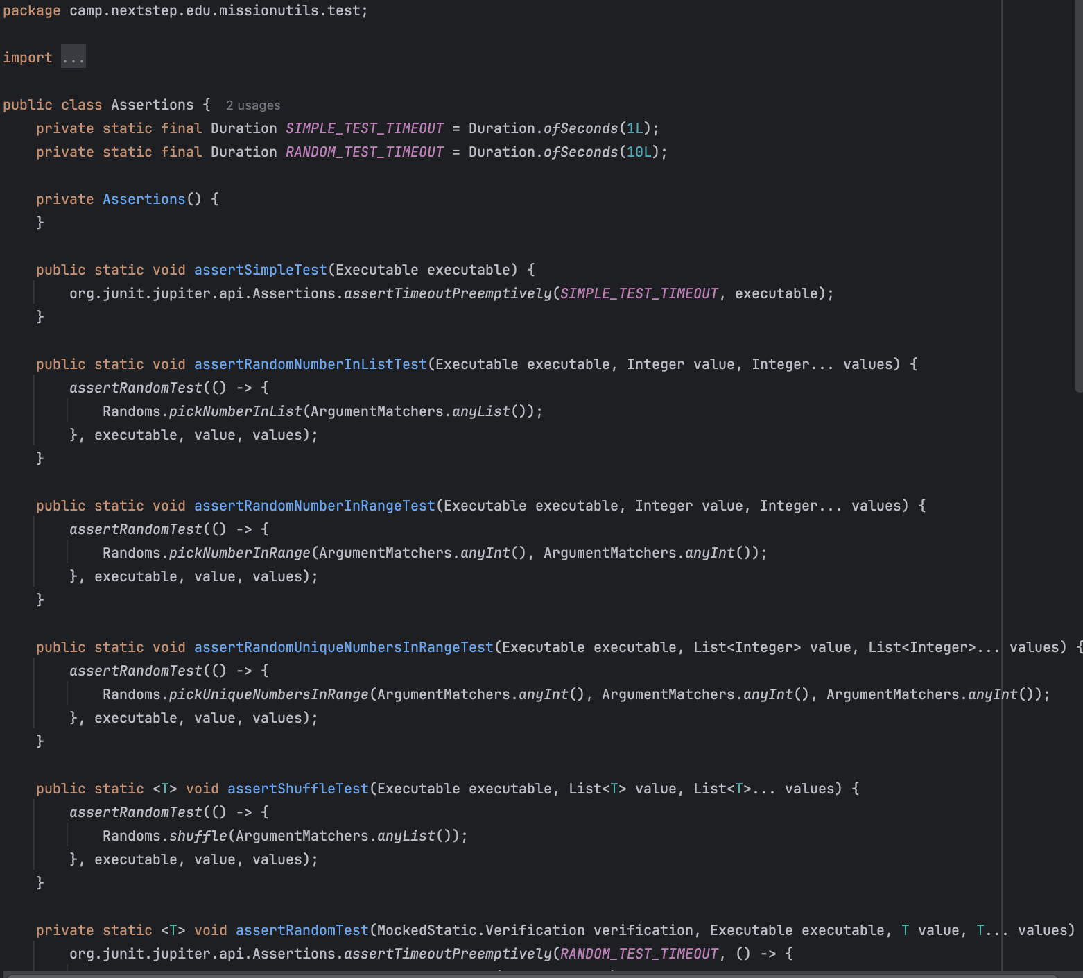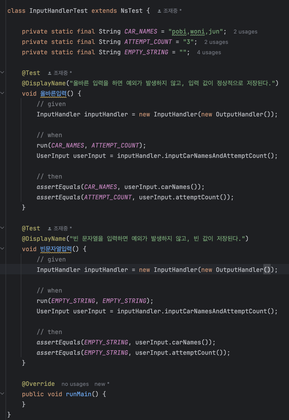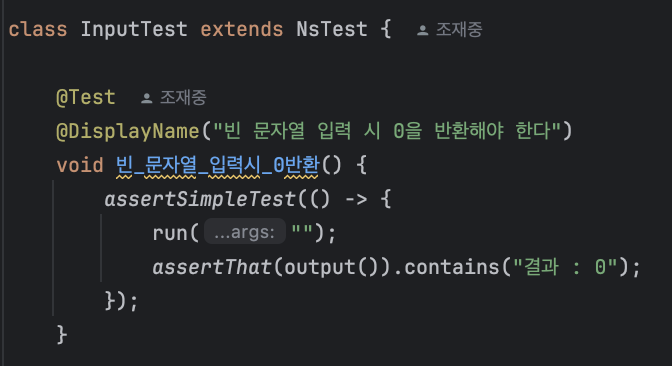 우테코에서 제공해 준 NsTest 덕분에 run 호출만으로 간단하게 가상의 입력 값을 테스트할 수 있었다!