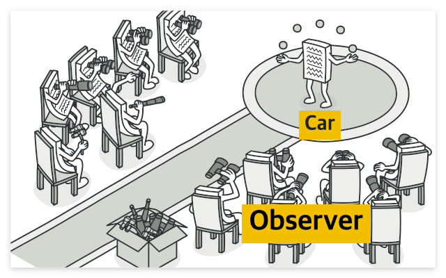 옵저버 구현체 (상태 변경, 즉 move를 한 Car로부터 알림을 받고 올바르게 출력한다.)