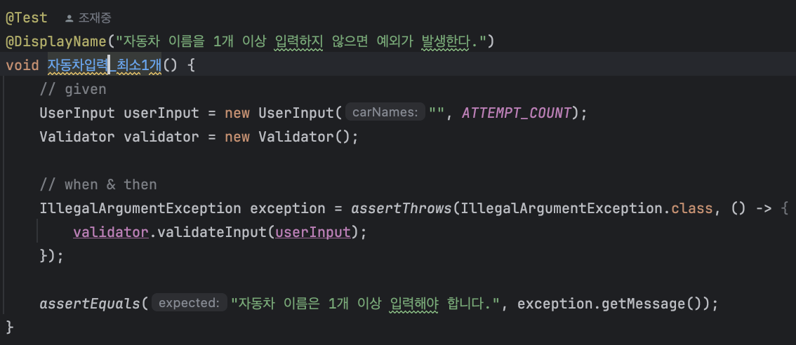 유저 입력을 검증하는 테스트는 UserInput 클래스를 통해 독립적으로 실행할 수 있다.