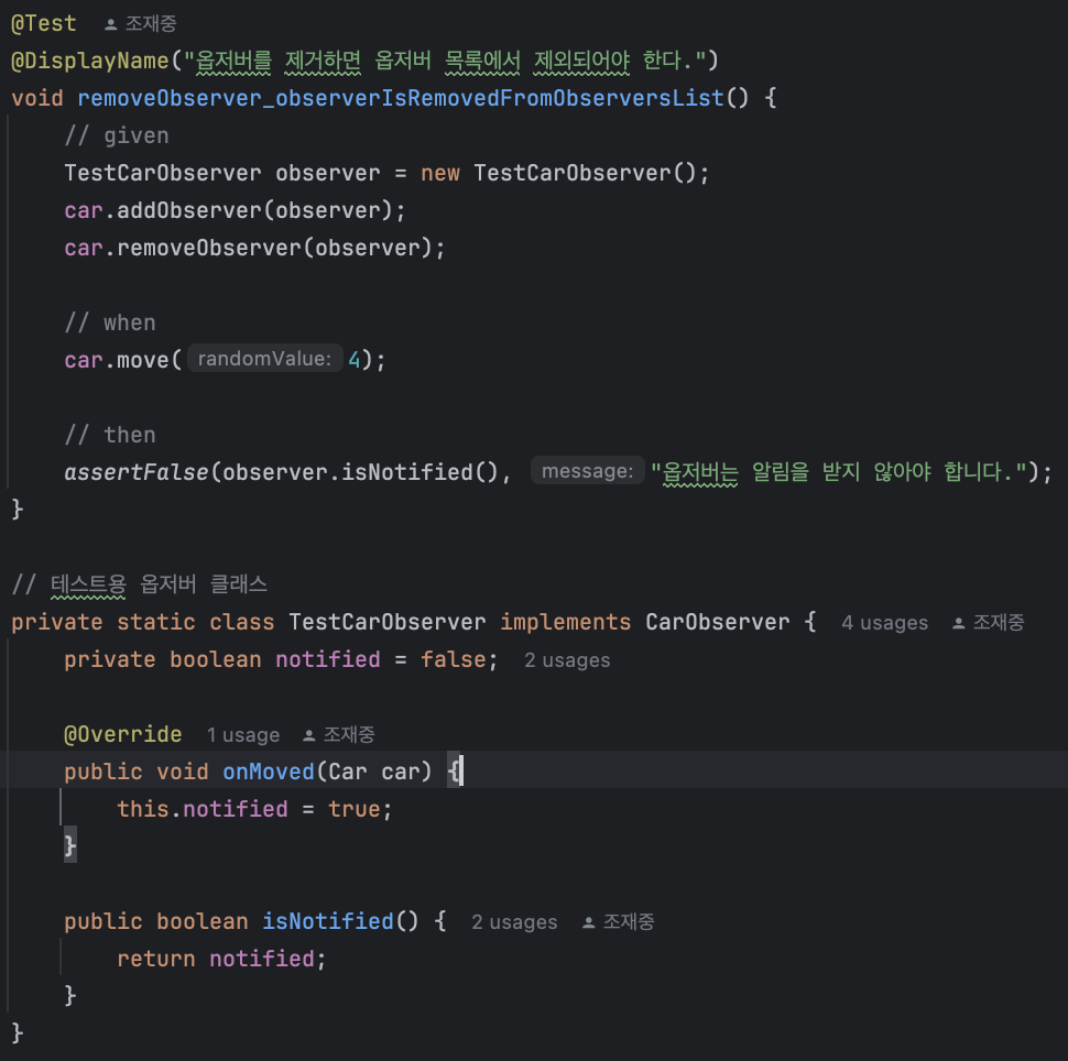 옵저버 삭제 테스트에서는 Mock을 활용해 삭제 동작을 명확히 검증할 수 있다.
