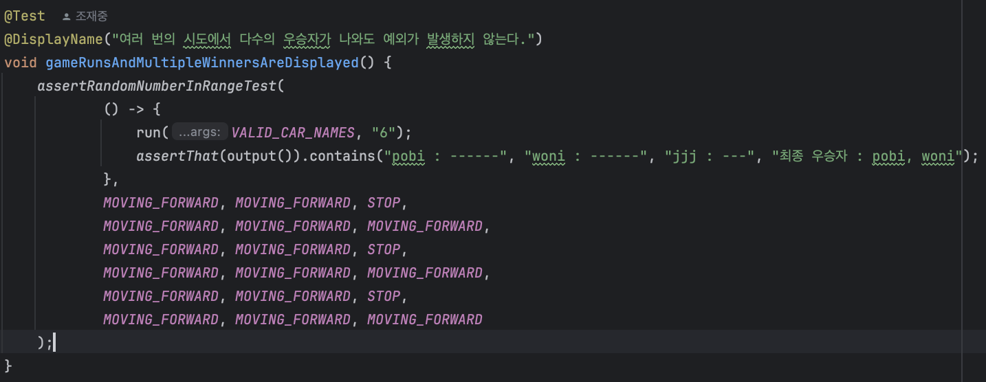 또, 이번 과제에서 무작위 값을 다루다 보니 테스트의 완벽성을 보장하기 어려웠지만, 제공된 테스트 클래스 덕분에 랜덤 값을 미리 지정하는 유용한 접근 방식(Mockito를 활용한 Mocking)을 배울 수 있었다.