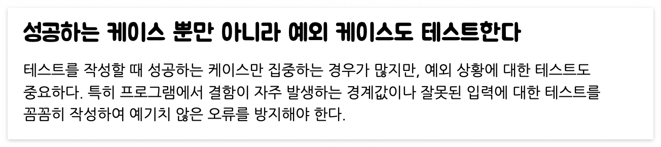 경계값 분석을 통해 다양한 예외 케이스를 도출하고, 이에 대한 테스트 코드를 추가했다.