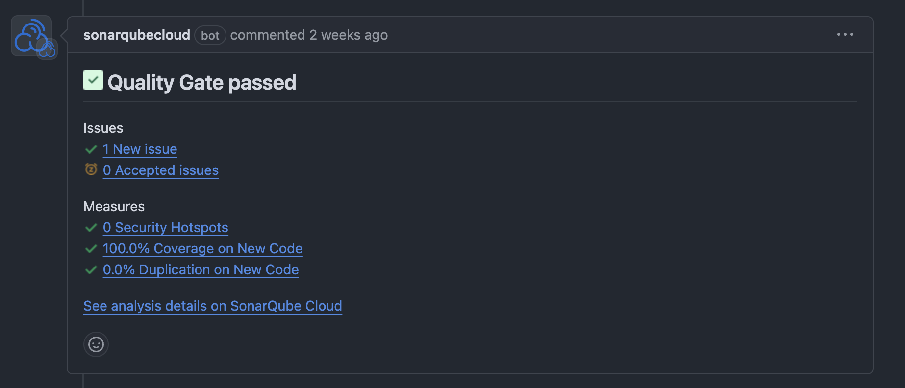 특히, 최종 프로젝트에서 소나큐브와 CI 연동을 통해 중복 코드나 보안상 문제가 되는 코드를 자동으로 분석하고, 테스트 커버리지를 위해 테스트를 반 강제적으로 작성하게 되면서 팀 전체의 코드 신뢰도가 크게 향상되었다. 이를 통해 안정적인 코드 품질을 유지할 수 있었으며, 협업 과정에서의 편리함을 배우기도 했다.
