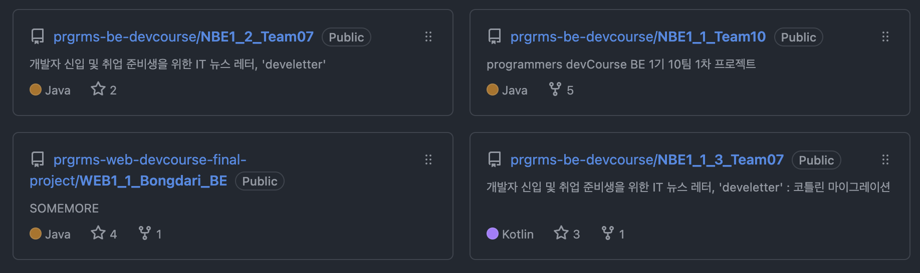백엔드 기초 역량을 다지며, 그와 관련된 프로젝트를 경험하는 순서로 진행됐다. 첫 번째로 커피 주문 서비스를 개발했고, 이어서 IT 뉴스레터 서비스를 주제로 한 2차 프로젝트를 진행했다. 이후 자바 스프링으로 진행된 2차 프로젝트를 코틀린 스프링으로 마이그레이션하며 기존 시스템을 개선하는 경험도 했다.