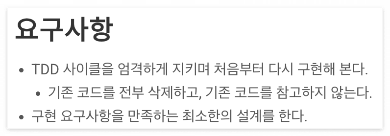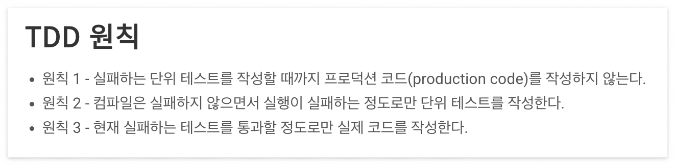- GREEN: 테스트를 통과할 최소한의 프로덕션 코드를 작성한다.