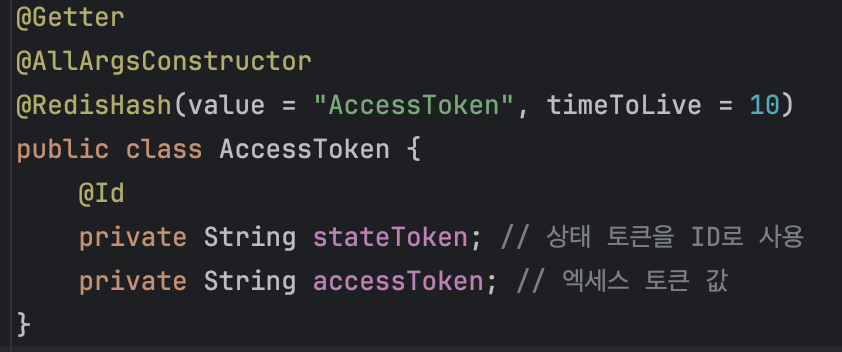 상태토큰은 redis에서 관리되며, 이를 이용해서 엑세스 토큰을 발급하면 일회성으로 사라진다. (혹은 10초가 지나면 사라진다)